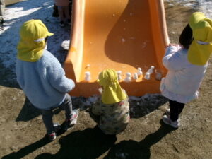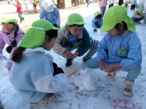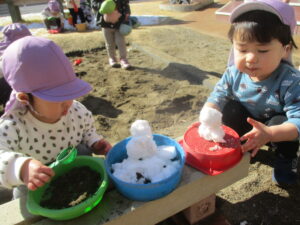 雪だるまを作ったり、雪でままごとを楽しんだり♪