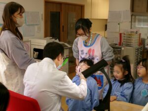 川崎歯科医院の先生が年に2回、子ども達の歯を診てくれています。