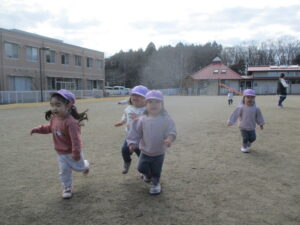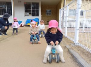 寒さに負けずに園庭でたくさん体を動かしました!かけっこもゲーム遊びも三輪車遊びも大好きな子ども達です♡